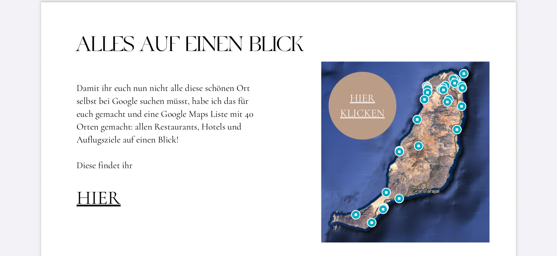 - Everything at a glance : Our comprehensive Google Maps list with 40 marked highlights takes the stress out of planning – so you can fully look forward to your vacation.